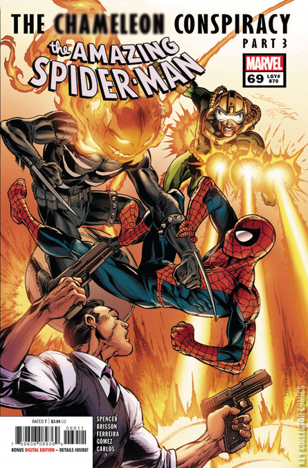 CHAMELEON CONSPIRACY, PART 3 Spidey and his superspy sister, Teresa Parker, dig to uncover THE CHAMELEON CONSPIRACY. Their investigation is challenged by Chance, Jack O’Lantern and the Foreigner’s anarchic alliance! LEGACY #870 | CONTINUED IN GIANT-SIZE AMAZING SPIDER-MAN: CHAMELEON CONSPIRACY #1