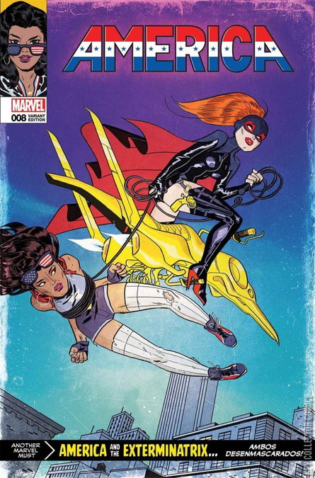 EXTERMINATRIX, PART 1: THE BEAST ABOUT TO STRIKE  Everyone's favorite no-nonsense powerhouse, America Chavez, may have finally met her match. Introducing - the deadly and exotic Exterminatrix! Can America continue her hard-hitting journey to defend the multiverse against the oncoming warpath of Exterminatrix and the ominous Midas Corporation? It's the start of a daring adventure as America gains all-new untested powers, and she'll need them against the coming horde of villains! PLUS: Includes 3 bonus MARVEL PRIMER PAGES! Story by Robbie Thompson and David López!