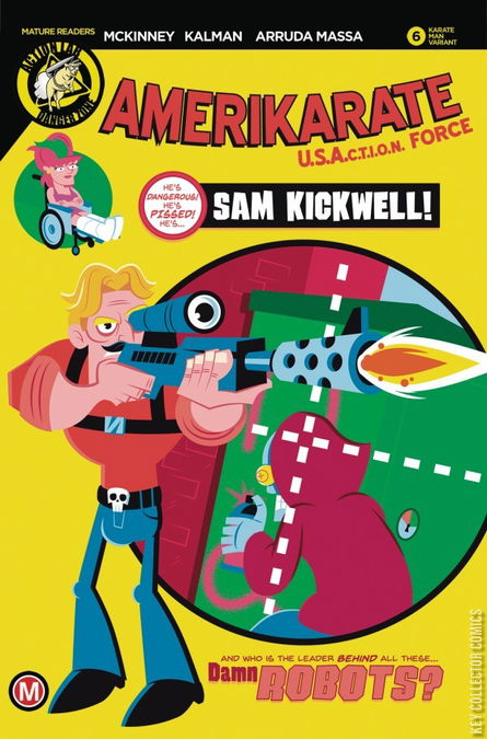 Explosions explosively disrupt Sam's life as Cynthia fights for her legs in the midst of the mysterious robot crime wave. Now it's up to Kickwell to clean up the city the only way he knows how: with an absolutely insane arsenal of asskicking weapons! If you've got a death wish, he's ready to grant it!