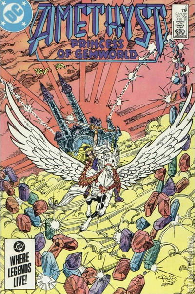 Although the habitual passage to the Gemworld is still closed, Amethyst is once again in this world while her physical body remains on her earth house, at Hudson city. Some islanders from the Aquamarine's islands disagree with the methods of their leader, Lord Aquamarine. Fire Jade uses one of this islanders, Quaar, to fight this Lord. Lord Sardonyx finds that his castle seems to have disappeared. This issue starts out the outside of the Winston's home Carnelian is outside seeing just like we all are that Amy aka Amethyst is sleeping in a trance separated from each other. Her mother Marion wants to be next to her and wake her up but that might mean death. We then head to Gemworld where we see Citrina in a fever like state and Amethyst's magic can not penetrate whatever has Citrina. Being careful Amethyst puts Citrina in a bed of flowers to hold Citrina so she doe. s not wander aimlessly. She then goes off to be with Garnet who is at a convocation of the Nobles at the Diamond Temple. We see a fisherman named Quaar who is fighting a sea monster which is pretty cool to see. He then is next seen coming to shore with the beast hauled in. Having a big feast the village dines on the beach only to be persecuted by one of Lord Aquamarine's henchmen. In a poof of magic Fire Jade appears and destroys the henchmen and tricks the villagers to help her. Amethyst arrives but sees Aquamarine and Turquoise leaving.Suddenly Prince Topaz attacks them only to knock Turquoise off to catch her and on the ground near an unseen Amethyst embrace each other leaving us with seeing tears in Amethyst eyes. Fire Jade sends Quaar and the village fisherman to rile up and attack Aquamarines palace. Unbeknownst to Quaar and his friends Fire jade is using them so that she might rule by any means necessary. Amethyst is still at the Diamond Temple and unknowingly brings in a creature she briefly battles it and is able to send it back through the portal. Meanwhile we get a cameo of the Monitor and Lyla looking at a sleeping Amy. We then see Lord Sardonyx going home but home is not there.