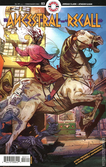 Besieged by robot dogs, Melvin Warring must use his still-new powers to call on Bill Pickett, turn-of-the-century Black rodeo hero, for help! Meanwhile, in the future, his wife June comes face to face with her captors at last. “It's SINNERS meets QUANTUM LEAP,” raves writer Steve Orlando, and we think you’ll agree.