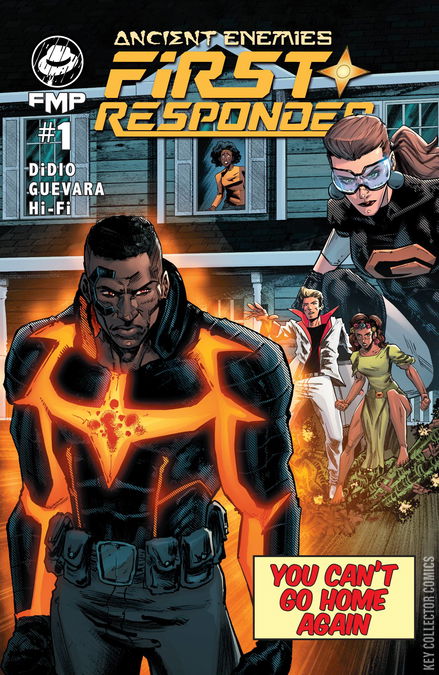 Trapped inside the shattered hull of an alien spacecraft and imprisoned for over twenty years, firefighter Sonny Palmer is transformed into something greater than and less than human. He is THE FIRST RESPONDER and dedicated his life to saving others while unable to save himself. In this one shot, we learn his origin and set up the world-shattering climax to the ANCIENT ENEMIES series. Written by Dan DiDio, with art and cover by our newest artist (part of the FMP Talent Search) Mario Guevara, with inks by Joe Prado and colors by HiFi. And don't miss our variant cover by another talented newcomer (and also part of FMP Talent Search), Alex Munoz.
