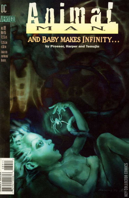 Final issue. The Spider Queen plots to possess Annie's unborn baby while Animal Man embarks on an incredible mission to escort and safeguard his child through its birth.