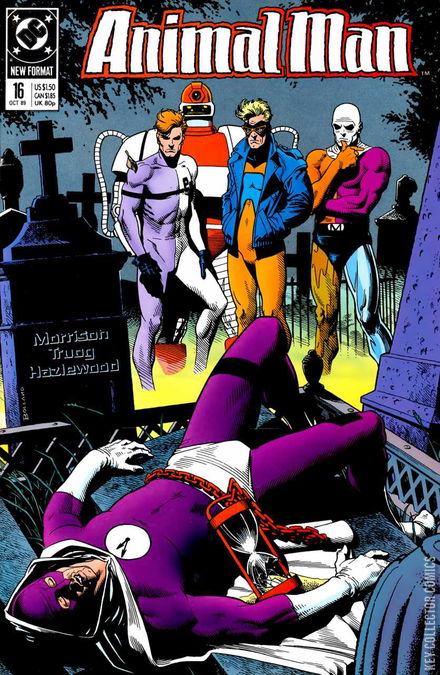 Animal Man enlists the aid of his Justice League Europe colleagues (including Metamorpho and Elongated Man) to combat the fearsome return of the Time Commander.
