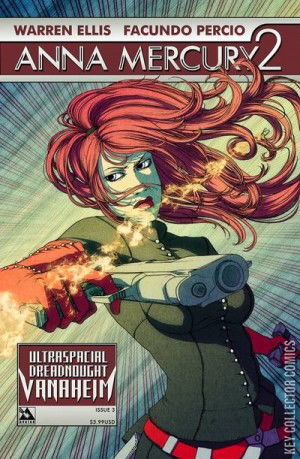 Anna Mercury is back in this summer's biggest explodo epic! Warren Ellis' fiery red-head once again bursts into mad science-fiction action with the stellar art of Facundo Percio, returning from the smash-hit original series! TECHNO-VIKINGS FROM BEYOND SPACE! Raiders who harrow the weird planet-cities of the extra-universal Constellation in their ancient mile-long warship, the Ultraspacial Dreadnought Vanaheim! Descending on the peaceful island of Three Souls Town, whose only possible savior might be... a girl from London with the call sign Anna Mercury.