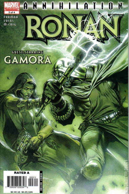 MYSTERY MASTERMIND REVEALED! Cosmic powerhouses Ronan and Gamora get it on...big time: a truly planet-shattering conflict that will, quite literally, reshape an entire world. Don't miss this important issue that helps redefine the cosmic map as we know it! This tragic series can only end with...Annihilation!