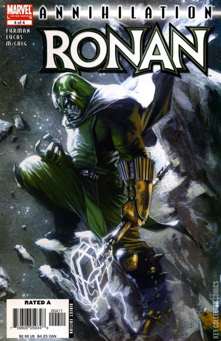 The dreams of a mad god die screaming as the Annihilation Wave descends on the recreated Godthab Omega. And in the middle of it all, Ronan, torn between saving as many lives as possible and a quickly disappearing chance to clear his name. Ultimately, the price of Ronan's newfound freedom...may well be his life! Guest starring GAMORA! Interlocking cover with all three other ANNIHILATION covers!