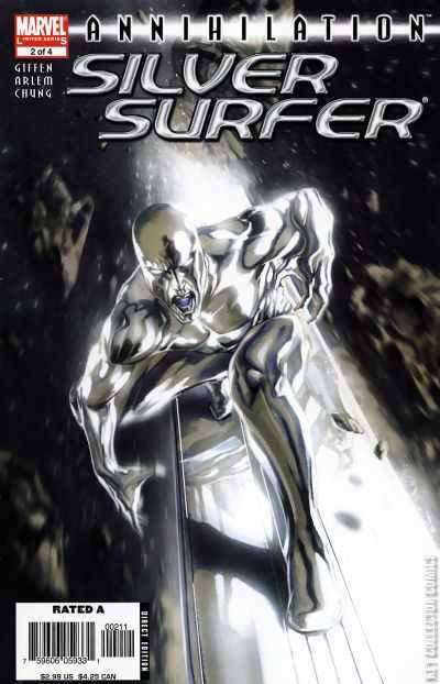"The Culling" The ex-heralds of Galactus unite to combat a common foe. But can even the combined powers of the Silver Surfer, Firelord, Terrax and Red Shift stand against the Annihilation Wave and it's mad master? And what dark ambition motivates Thanos to strike a dark alliance with the invading force?