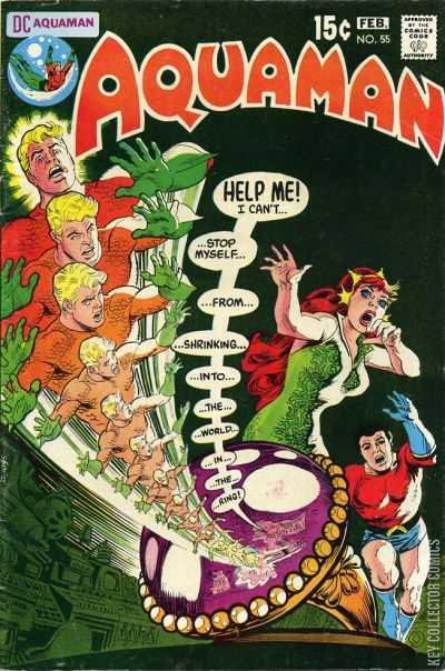 Return Of The Alien!After consulting with the Atom, at a meeting of the Justice League of America, Aquaman prepares to return to the microscopic world within his wife Mera's ring. While previously trapped in the ring dimension, Aquaman had been forced to abandon a young woman to slave traders. This act has never sat well with the King of the Seas. Aquaman is determined to return to the ring dimension, and rescue his former traveling companion. As Mera maintains some form of psychic influence over the ring world, it is up to her to concentrate on finding the girl, and leading Aquaman to her. Once Vulko readies the Atom's device, Aquaman shrinks down to subatomic size and re-enters the ring dimension. Almost immediately, Aquaman in attacked by one of the giant, cyclopian amoebas that dwell in "The Wilderness". Aquaman chooses to flee rather than face the creature. Following Mera's telepathic pull, Aquaman is drawn to the slave trader's colony. Aquaman is attacked, just outside the colony, by a contingent of slave traders. Mera can sense her husband's peril, and it's all Vulko can do to stop her from willing Aquaman back out of the ring. Meanwhile, Aqualad attends a political rally being held by the Atlantean politician, Noxden. Noxden demands that Aquaman be replaced as KIng, for turning Atlanteans back into water breathers. Aquagirl, too, finds that the former insurrection leader, Mupo, agrees with Noxden's position. Atlanteans should return to being air breathers. By defying that idea, Aquaman has turned against the interests of the Atlantean people.Aquaman is defeated by the slave traders, and taken prisoner. Sensing this dire turn of events, Mera concentrates on reviving Aquaman, and the Sea King awakes. Breaking loose from his captors, Aquaman quickly locates his quarry, the girl from "The City". He is surprised to find that she does not wish to be rescued. Though the slave traders do force her to work, they have also opened her mind. The prejudices she grew up with...