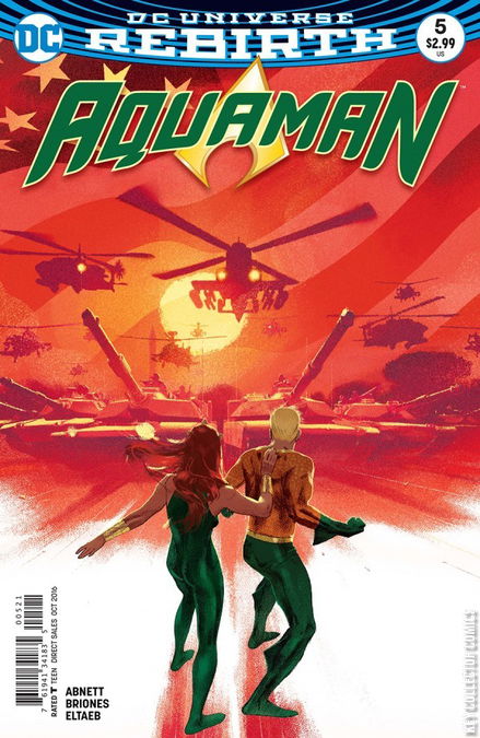 THE DROWNING, PART FIVE: EXECUTIVE SANCTION Unjustly branded a murderer and a fugitive, Aquaman’s forced to defend himself against the might of America’s military. Meanwhile, Black Manta and the deadly underwater crime cabal known as N.E.M.O. advance their plan for revenge on Aquaman.