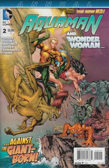 During his battle with Hercules, Aquaman unleashed an ancient evil from the days of the Greeks -- so he's called in Wonder Woman to help him clean up the mess! You can be sure the Queen of the Amazons and the King of Atlantis have plenty to talk about if they can hear each other over the bloodcurdling screams of the Giant-Born!