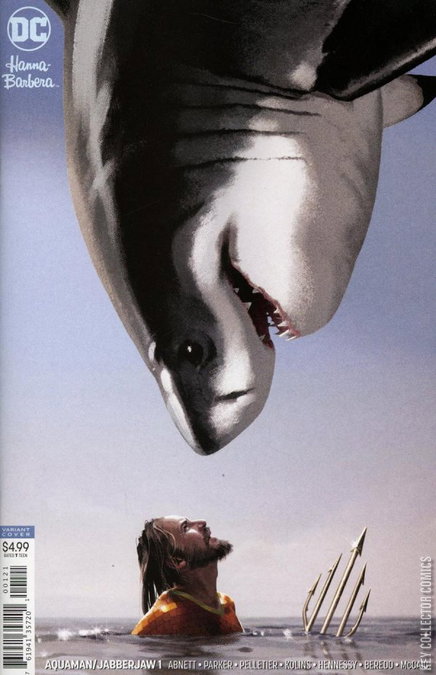 When the town of Amnesty Island is besieged by a series of shark attacks, authorities call Aquaman for help! What’s unusual about this case is that the shark isn’t trying to kill people—he just wants to talk to them. The very confused Jabberjaw needs to get back to Aqualand, the future undersea utopia where he came from. But that peaceful city where man and sentient sea life have been living in harmony has been turned into a dystopian nightmare created by a new Ocean Master. Now the King of Atlantis and his friendly shark ally have to team up to set things right. Also includes a Captain Caveman meets the wizard Shazam in a short story by Jeff Parker and Scott Kolins.