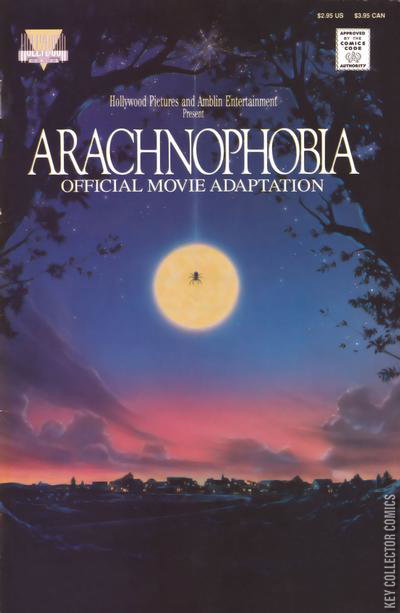 Official Movie Adaptation of the 1990 film. Photo cover. Archnophobia, script by William Rotsler, Don Jakoby (story, screenplay), Al Williams (story), and Wesley Strick (screenplay), art by Dan Spiegle; A species of South American killer spider goes to the United States in a coffin; they begin breeding and killing. 68 pgs., full color. Cover price $2.95.