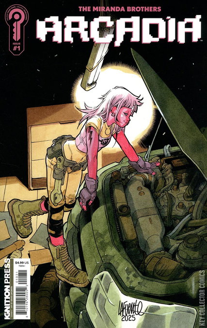 In a future where humanity has vanished, a new form of life rises from the ruins: the Serants, artificial beings born from mysterious technological chrysalises known as Superdragons. Each one carries a Pearl, a biotechnological core that holds their consciousness, their memories…their soul.Halu is a Serant born late, emerging from a forgotten silo. He is rescued from destruction by Weedy, an eccentric scavenger obsessed with the remnants of the past and the search for meaning in their own existence. Soon after, Halu meets Fix, a practical, strong, and luminous young mechanic who awakens something deep within him. Together, in a world of ruins and dangers, they search for meaning, connection, and a reason to endure.Arcadia is a work of existential science fiction--profoundly human, where memory and love endure as a precious mystery that refuses to fade. A story that explores what makes us human…when humanity is no longer there to tell us the answer.A brand-new sci-fi epic courtesy of The Miranda Bros., the acclaimed creators of We Live and Blade Forger. This special incentive cover by superstar artist David Lafuente (Ultimate Comics Spider-Man) is available to retailers, 1 for every 5 copies of Arcadia ordered.