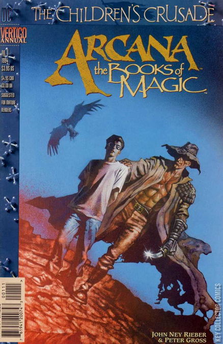 "The Children's Crusade" part 6, continued from DOOM PATROL (1987-1995) ANNUAL #2. Tim Hunter, the teenager introduced in THE BOOKS OF MAGIC who has the potential to become the world's greatest mage, becomes enmeshed in Free Country's plot to recruit children of power. Continued in THE CHILDREN'S CRUSADE #2.This story is part of the story arc "The Children's Crusade" and somewhat the bridge between Neil Gaiman's Books of Magic and John Ney Rieber's Books of Magic.