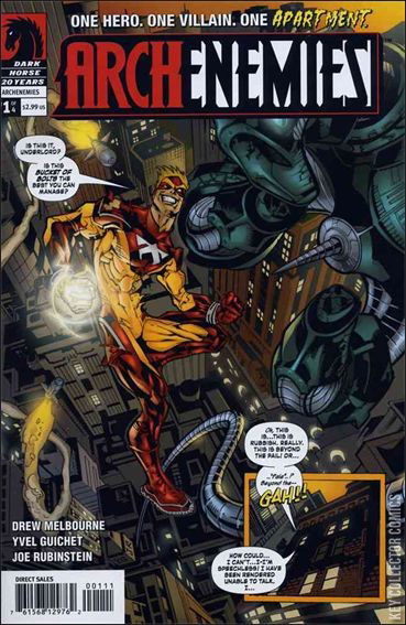 Ethan has no idea that Vincent, his roommate, is the villainous Underlord. Vincent has no clue that Ethan is the superhero called Star Fighter. In their costumed identities, they're mortal enemies, but as Ethan and Vincent they're the best of...wait, NO, as Ethan and Vincent they STILL hate each other's guts. Can comics' ultimate, super-powered odd couple keep their secrets secret AND learn to live together in peace? ArchEnemies is high-concept superhero action comedy drama times eleven. In our debut issue, it's a battle of wills as Ethan and Vincent try to drive each other OUT of the apartment and OFF the lease. But, in a moment of weakness, will one roommate go too far?