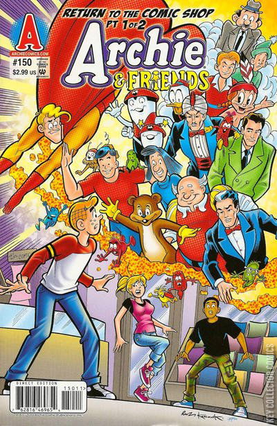 A visit to the Pep Comics Shop turns interdimensional! Jughead's cousin Souphead won't fall for Reggie's story about hordes of classic comic book characters unleashed on the town from a fallen meteorite. That is, until those legendary MLJ/Archie Comics characters return through interdimensional portals to prove it!
