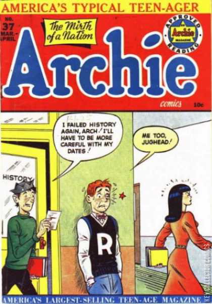 Introduction of Mr. Jansen in "The Trouble Shooter," art by Ray Gill; Archie tries to fix Betty's radio which leads to further trouble. Appearance by Veronica's mother, Mrs. Lodge, in "Trunk Trouble," art by Ray Gill; Mr. Lodge's papers are locked in the trunk of Veronica's car; Archie tries to help. "Flying High," art by Ray Gill; Betty mistakenly buys her father an airplane. Introduction of Mrs. Primple in "Archie Gets the Bird," art by Bill Vigoda; Archie buys a talking parrot. "Skate Date," art by Ray Gill; Archie wants to go roller skating. "Ride Him Cowboy!" text story by Ray Gill. Introduction of J. Frederick Worthington in "Give 'Til It Hurts," art by Bill Vigoda; Archie tries to help a hobo.