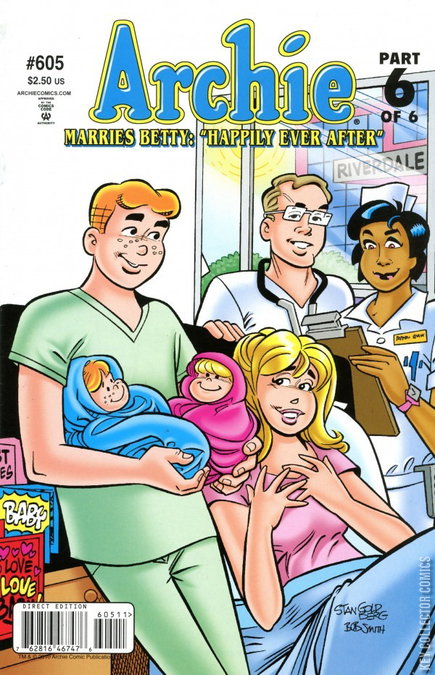 Now that you've witnessed the engagement and wedding of Archie and Betty, prepare for the next stage of married life: parenthood! Of course, you haven't really had a taste of parenthood until you've seen it done Archie-style! Can Archie get through Lamaze class without causing a commotion? Never mind that - can he make it through the actual birth without full scale panic? Mixed in with the patented Archie humor is the heartwarming reaction among the new grandparents, friends and faculty. And let's just say there's a big surprise in store for the happy couple! But that's not the only surprise in Riverdale - just wait until you see the job Archie gets, and who ends up with whom among Archie and Betty's friends... not to mention yet another surprise wedding! When it comes to Riverdale, the surprises never end! With a script by famed movie producer Michael Uslan and art by legendary artist Stan Goldberg, this is sure to be one of the most talked-about Archie issues of all time. Don't miss this thrilling conclusion to the Archie saga of the century!