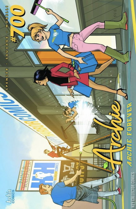 A brand new era of ARCHIE begins in this landmark 700th issue of our flagship series! Join the new creative team of writer Nick Spencer (The Amazing Spider-Man) and artist Marguerite Sauvage (DC's Bombshells) as they take a trip to Riverdale and bring Archie, Betty & Veronica, Jughead, and the rest of the town along for a wild ride complete with new mysteries, new relationships, and much more!