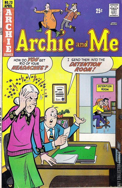 "Safety Last"; Archie uses photos of Mr. Weatherbee to illustrate what not to do in a school paper article on safety in sports. "Time Limit" one-page story; Jinx cleans up her room and wants her father to see it quickly before she messes it up again. "Arch for Art's Sake"; Betty paints a mural on the school corridor. "Good Deal" Hostess Cup Cakes ad starring Archie. "Rash Sounds"; Mr. Weatherbee takes a nature walk to de-stress after his doctor tells him that his rash is a result of nerves. "Milk Ilk" one-page story; Mr. Weatherbee's doctor tells him to drink a glass of milk for his ulcers whenever Archie irritates him. Archie Club News. "Something Outstanding"; The school decides to put a statue out front.