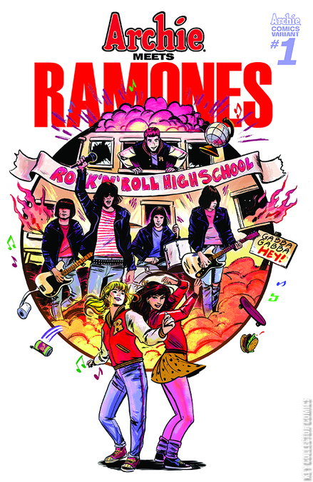 Hey! Ho! Let’s go! America’s favorite teens cross paths with the original NYC punks in this extra-sized one-shot spectacular that is not to be missed! When the Archies tank at the Riverdale High Battle of the Bands, a magical twist of fate sends them hurtling into the past—and face-to-face with none other than the Ramones! Can the legendary punks get the Archies to realize their own rock ‘n’ roll potential and find their way home? Probably not—but it’ll be a blitzkrieg bop of a journey, as the two bands bounce from 53rd and 3rd to Rockaway Beach in this must-read crossover from the writers of the best-selling ARCHIE MEETS KISS and WE CAN NEVER GO HOME with jaw-droppingly beautiful art from Gisele Lagace (“Occupy Riverdale”)!