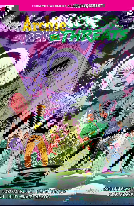 Not a hoax! Not a dream! The fun-loving teens of Riverdale collide with the crooked super-criminals of Twilight City in the most bombastic crossover of the year! It's your favorite high schoolers forced to FIGHT your favorite costumed villains in a story that will have lasting ramifications on all involved! ARCHIE, BETTY, VERONICA, JUGHEAD and friends are on on their way to a field trip to Twilight City when the magical meddling of SABRINA THE TEENAGE WITCH lands them in the seedy underbelly of Redport, the most villainous part of town controlled by Frankie Follis AKA PLAYTIME and her gang of MINOR THREATS. Archie and the others suddenly find themselves drafted into both sides of the war Playtime is waging against magic users in her turf. One thing is for sure... blood and milkshakes will be spilled! Issue one of the four issue mini is written by Minor Threats co-creators Patton Oswalt and Jordan Blum with Timmy Heague (Archie Comics' Fear the Funhouse: Toybox of Terror) and art by Scott Koblish (Deadpool).