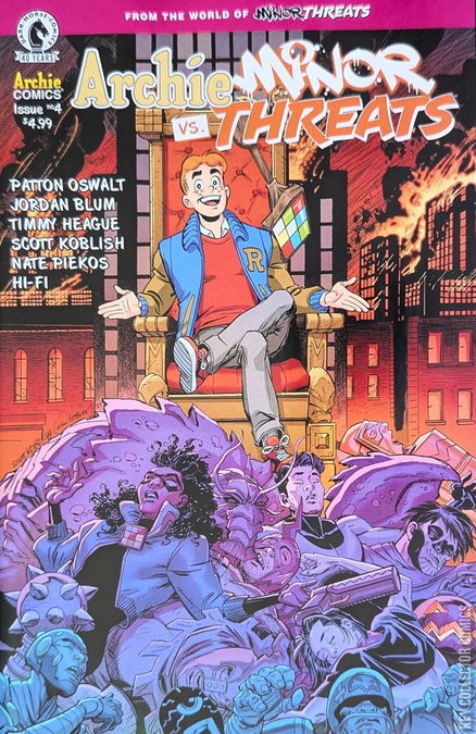 Archie Andrews of Riverdale and Frankie Follis aka Playtime are forced to team-up. From adversaries to allies, an unlikely alliance is forged! The duo have been sucked into a magical abyss after chasing after the almighty Five Fingers of Merlin AND more importantly, their beloved Betty & Scalpel! This vortex of magic bends time and space to alter reality, confronting those who enter with their past and future, challenging them to question everything they know about themselves and the life they live. Can our dysfunctional dynamic duo survive this twisted mystic realm or will the magic-addicted Top Hat get in their way from not just saving the women they love, but their homes of Riverdale and Twilight City?... Crime, milkshakes, and magic await you in this climatic crescendo finale of the first ever Minor Threats crossover! From the villainously comedic minds of Patton Oswalt, Jordan Blum, Timmy Heague, and featuring artwork by the dastardly yet brilliant Scott Koblish! • Series finale!