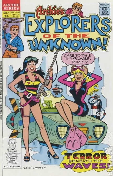 Cover art by Rex W. Lindsey. Terror Beneath The Waves!, script by Rich Margopoulos, pencils by Rex W. Lindsey, inks by Pat Kennedy; The Explorers take on Dr. Crustacean, a maniacal marine biologist with giant crab monsters at his disposal. 36 pgs. $1.00. Cover price $1.00.