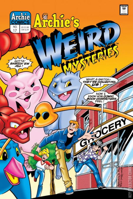 Gotta Snatch 'Em All - Written by Paul Castiglia. Art and Cover by Fernando Ruiz and Rich Koslowski. A struggling animator's satellite dish picks up a weird broadcast from another planet, inspiring him to draw what he sees. Thus, the "Wallet-Men" craze is spawned! But what happens when actual "Wallet-Men" invade the Earth seeking royalties? It's one mind-bending mystery no Pokemon or anime fan should miss!