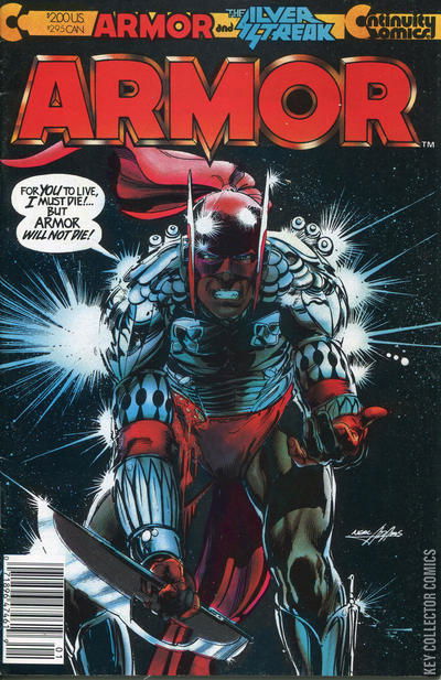 Home / Continuity / Armor / Armor #1 Continuity Released September 1985 Armor #1 Add to Collection Want It Synopsis No synopsis available. Issue 1 of 13 Add to Collection Buy it on eBay Buy on eBay Low $1 Mid $2 High $3 Synopsis No synopsis available. Details Series Armor Cover Date September 1985 Pages 36 UPC 07189647461901 Cover Price $2.00 Final Order Cutoff N/A Creators No creators listed. Price Guide Log in or subscribe to access detailed graded price information and market insights. Log In Subscribe