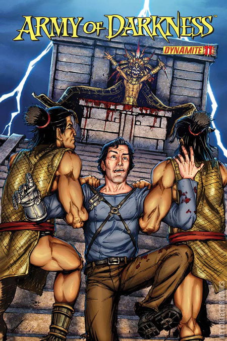 After the events of last issue, Ashley J. Williams and his mini-deadite sidekick Sam find themselves looking for a way back to the present. Unfortunately for them, dark forces are working to ensure that they remain lost in the time stream. How will Ash and Sam overcome the odds when faced by a resurrected King Montezuma who wants to feed them to the Old Ones? Forget what the Mayans said, It's the Aztec Apocalypse baby, and all that stands between us and it is a chainsaw, a boomstick and a chin! These are the all-new adventures of the hero from the cult-classic horror/adventure film! Don't be a primitive screwhead - order your copy today!