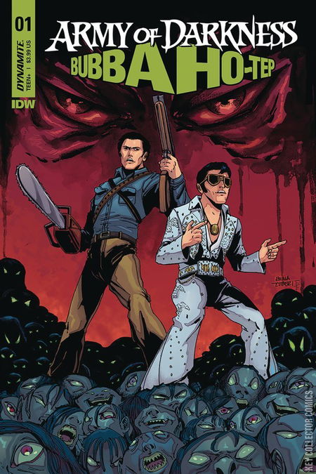 Two cult classics clash for the first time in an epic crossover miniseries: ARMY OF DARKNESS VS. BUBBA HO-TEP. Ash embarks on a soul-searching road trip to Texas on a hunch that Elvis Presley may still be alive and kicking (and supposedly vanquished a mummy)! What follows is a series of universe-spanning events that involve an Elvis jumpsuit with special time-travel abilities, a trip to 70's Vegas, plus the reveal of an evil new Book of the Dead, the Necronomicon Ho-Tep. Has Ash met his ultimate match when trading barbs with a 4,000-year-old, foul-mouthed mummy who sucks souls? Can his idol Elvis mentor him through a mid-life crisis before it becomes his final crisis? Join the adventure in a road-tripping, time-hopping groovy tale!