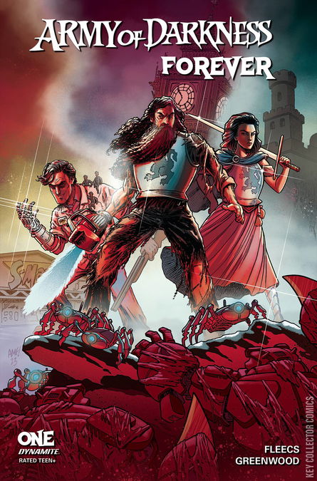 'After it debuted in 1993, the classic Sam Raimi film Army of Darkness quickly became the most beloved movie of the popular Evil Dead franchise. And with the launch of their Army of Darkness comics in 2005, Dynamite set a new standard for the indefatigable Ash Williams's adventures in any medium! Now, after nearly three decades of Ash-tastic action, Dynamite is upping the ante with the ultimate AOD comic book series: Army of Darkness� FOREVER! Picking up immediately after the events of Army of Darkness (the Director's Cut, natch), Ash chainsaws his way through the Techno Army of Darkness in 2093 and defends the sacred aisles of the S-Mart in 1993! (What? How!?) Meanwhile, in the distant past, his lady love Sheila fights off a rising evil at Castle Kandar! Written and illustrated by comics heavyweights TONY FLEECS and JUSTIN GREENWOOD, Army of Darkness Forever features incredible covers by some of the medium's greatest masters of horror, including series writer/mastermind TONY FLEECS, artist NICK DRAGOTTA (East of West), the zombie king himself, ARTHUR SUYDAM, and master painter FRANCESCO MATTINA! '