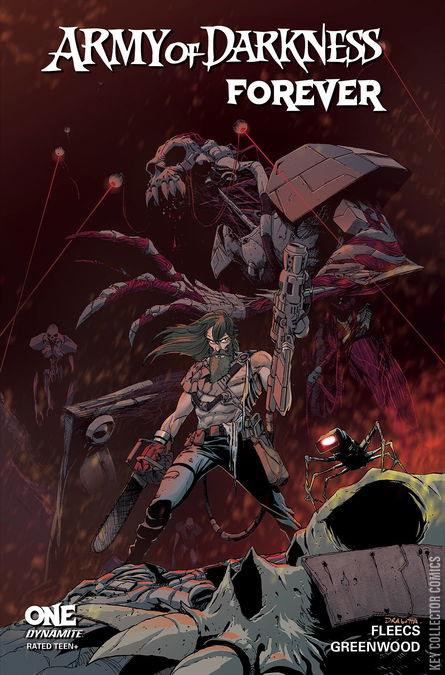 'After it debuted in 1993, the classic Sam Raimi film Army of Darkness quickly became the most beloved movie of the popular Evil Dead franchise. And with the launch of their Army of Darkness comics in 2005, Dynamite set a new standard for the indefatigable Ash Williams's adventures in any medium! Now, after nearly three decades of Ash-tastic action, Dynamite is upping the ante with the ultimate AOD comic book series: Army of Darkness� FOREVER! Picking up immediately after the events of Army of Darkness (the Director's Cut, natch), Ash chainsaws his way through the Techno Army of Darkness in 2093 and defends the sacred aisles of the S-Mart in 1993! (What? How!?) Meanwhile, in the distant past, his lady love Sheila fights off a rising evil at Castle Kandar! Written and illustrated by comics heavyweights TONY FLEECS and JUSTIN GREENWOOD, Army of Darkness Forever features incredible covers by some of the medium's greatest masters of horror, including series writer/mastermind TONY FLEECS, artist NICK DRAGOTTA (East of West), the zombie king himself, ARTHUR SUYDAM, and master painter FRANCESCO MATTINA! '
