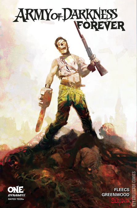 'After it debuted in 1993, the classic Sam Raimi film Army of Darkness quickly became the most beloved movie of the popular Evil Dead franchise. And with the launch of their Army of Darkness comics in 2005, Dynamite set a new standard for the indefatigable Ash Williams's adventures in any medium! Now, after nearly three decades of Ash-tastic action, Dynamite is upping the ante with the ultimate AOD comic book series: Army of Darkness� FOREVER! Picking up immediately after the events of Army of Darkness (the Director's Cut, natch), Ash chainsaws his way through the Techno Army of Darkness in 2093 and defends the sacred aisles of the S-Mart in 1993! (What? How!?) Meanwhile, in the distant past, his lady love Sheila fights off a rising evil at Castle Kandar! Written and illustrated by comics heavyweights TONY FLEECS and JUSTIN GREENWOOD, Army of Darkness Forever features incredible covers by some of the medium's greatest masters of horror, including series writer/mastermind TONY FLEECS, artist NICK DRAGOTTA (East of West), the zombie king himself, ARTHUR SUYDAM, and master painter FRANCESCO MATTINA! '