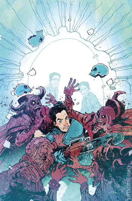 When an archaeological dig unveils an important element from the world of the Army of Darkness, it ends up in the absolute worst hands of all... Dr. Herbert West. As West tinkers in God's domain, our reluctant hero is once more drawn within the sphere of destiny as he faces a triple threat of danger! This issue: Bad Ash and Herbert have teamed up, but it's the Necronomicon that's large and in charge. And wait, what's that Ash spies with his little eyes? A portal! That can't be good, can it? Writer Erik Burnham is joined by returning Dynamite artist Eman Casallos to bring you all of the excitement and deadite action! Joining Dynamite superstar cover artists Arthur "Zombie King" Suydam and Stuart (KISS) Sayger is Tony (Stray Dogs) Fleecs and the Dynamite debut of Christopher (Hellboy) Mitten!