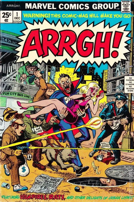 Home / Marvel / Arrgh! / Arrgh! #1 Marvel Released {{ issue.publishedDate|to_date|date:'F Y' }} Arrgh! #1 Add to Collection Want It Synopsis "Fangs for the Memory" Add to Collection Buy it on eBay Buy on eBay Low $5 Mid {{ issue.priceMedium | price }} High $35 Synopsis "Fangs for the Memory" Details Series Arrgh! Cover Date December 1974 Pages N/A UPC N/A Cover Price $0.25 Final Order Cutoff N/A Creators Artist Mike Sekowsky Inker Tom Sutton Price Guide Log in or subscribe to access detailed graded price information and market insights. Log In Subscribe