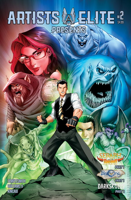 Artists Elite Presents #2 features the premiere of 3 new stories! Ben Templesmith's (30 Days of Night) Darkskulls where five weary and jaded immortals tied to the life-force of the planet might bother to come together to save it one last time. Freddie Williams II's (Batman/TMNT) Belong tells how a lonely, quiet, creative kid finds the family he's always wanted by eagerly paying everything for it. Ryan Kincaid's (Cover Artist) Seraph and the Seven questions if sending one of the original angels will be enough to save humanity from the Seven Deadly Sins!