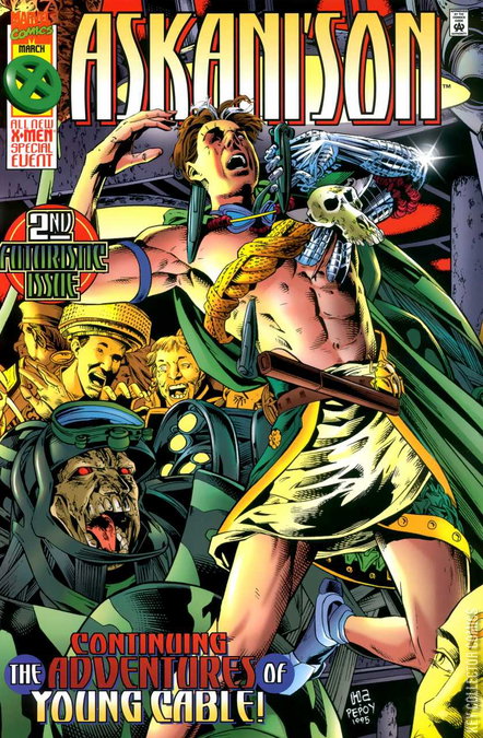 Nathan and his comrade Tetherblood wet their whistle at a “milk” bar. After getting into an argument, a New Canaanite ‘Strator confronts both men and questions their allegiance to New Canaan. Meanwhile, Stryfe and Ch'Vayre head to Egypt to disrupt the tomb of En Sabah Nur. Will Stryfe regain the powers of Apocalypse, and resurrect an Age of Destruction?Nathan has gotten sidetracked and ends up beating some officials in a milk bar. Blaquesmith finds the boy and redirects him to finding the last of the Askani. Strator Umbridge is also seeking the Askani, but to destroy them. Her undercover work with a pirate ship brings her close to Stryfe. He is trying to reanimate life; namely, the armies of Apocalypse. He also gets word that the Askani faction still exists and the leader may be able to help him to achieve his goals of domination.
