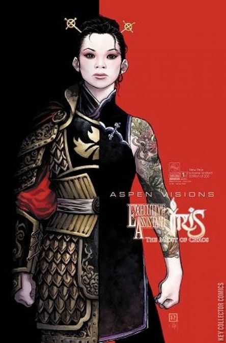 In the tradition of DC's Elseworlds and Marvel's "What If?" classic stories comes Aspen's most mind-bending concept ever-ASPEN VISIONS! It all begins here in a special three part mini-series spanning across Aspen's most popular titles-Fathom, Soulfire and Executive Assistant Iris! Journey through time and reality beginning in the pages of Executive Assistant: Iris, as the preeminent heroine Iris emerges in Ancient China in the middle of a deadly war! Just how does this battle from the past-and Iris--merge into the Fathom and Soulfire universes? You'll have to discover for yourself in the pages of this three-issue event and the pulse-pounding launch of the all-new ASPEN VISIONS line of books that will shatter everything you know about Aspen's most popular characters!