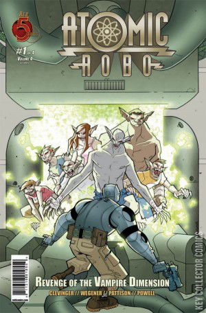 New York City, 1999. Atomic Robo has to wrap up some loose ends before jetting off to Japan for a business trip. Yup, just an average day at Tesladyne HQ where nothing bad can happen. Especially not The Revenge of the Vampire Dimension starring Atomic Robo, the force of nature known only as Jenkins, a ton of vampires, and Dr. Bernard Fischer on his very first day on the job.