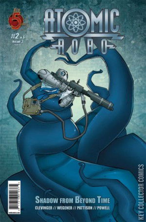 A true Lovecraftian horror rampages through New York City. Armed with nothing but Charles Forst and a pair of Tesla-built Lightning Guns, Atomic Robo must stop the Shadow from Beyond Time before it swallows the world in darkness - forever!