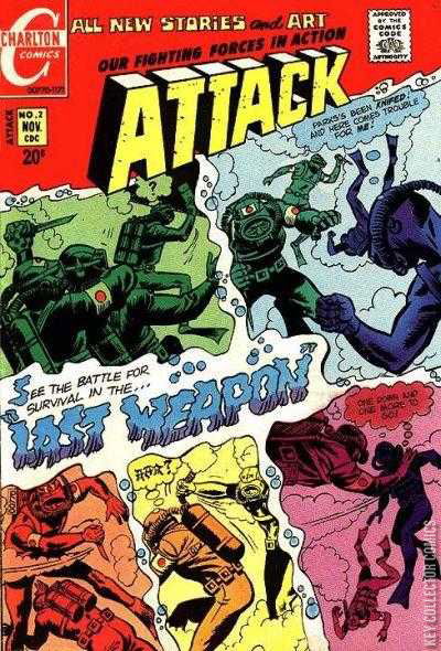 Home / Charlton / Attack / Attack #2 Charlton Released November 1971 Attack #2 Add to Collection Want It Synopsis No synopsis available. Issue 2 of 48 Add to Collection Buy it on eBay Buy on eBay Low $2 Mid $10 High $30 Synopsis No synopsis available. Details Series Attack Cover Date November 1971 Pages N/A UPC N/A Cover Price N/A Final Order Cutoff N/A Creators No creators listed. Price Guide Log in or subscribe to access detailed graded price information and market insights. Log In Subscribe