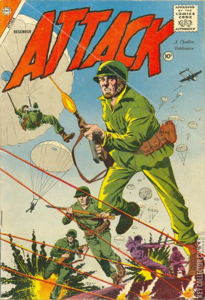 Home / Charlton / Attack / Attack #55 Charlton Released {{ issue.publishedDate|to_date|date:'F Y' }} Attack #55 Add to Collection Want It Synopsis No synopsis available. Add to Collection Buy it on eBay Buy on eBay Low $8 Mid {{ issue.priceMedium | price }} High $90 Synopsis No synopsis available. Details Series Attack Cover Date December 1958 Pages 36 UPC N/A Cover Price $0.10 Final Order Cutoff N/A Creators No creators listed. Price Guide Log in or subscribe to access detailed graded price information and market insights. Log In Subscribe