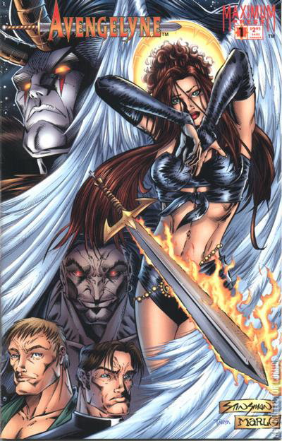 Written by Robert Napton and Rob Liefeld. Art by John Stinsman and Marlo Alquiza. The countdown to Avengelyne's baby begins as the ongoing series starts at last! Month in, month out, you'll enjoy the tale of the fallen angel as the forces of light and darkness continue to surround her! The future becomes uncertain as the question of immaculate conception or demonic deception strikes to the very core of Avengelyne's being! Guest-starring Devlin.