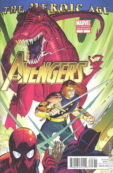 THE NEXT AVENGERS PART 3 At an apartment with a perfect view of Avengers Tower, a young girl is attempting to view it with binoculars. Then suddenly, Thor crashes through the window. He gets up to help the other Avengers against Apocalypse and his Horsemen. Maria Hill advises Iron Man to take Noh-Varr somewhere else to build the time machine, a suggestion which is turned down, seeing that if Apocalypse is here, then it's a timestream problem. He also notices that the Scarlet Witch is one of the Horsemen. He tries reaching out to her, only for her to react and disassemble his armor, causing him to fall from the sky. Spider-Man jumps down after him and manages to catch him with his webs. Back up at the Tower, Bucky presumes that Apocalypse appearing now must be because of Kang, though Wolverine thinks otherwise, knowing that he and his Horsemen shouldn't be here. Iron Man backs him up and attempts to talk to the ancient mutant, only to get babbling from him. Then, Apocalypse and his Horsemen vanish from view. While Spider-Man is shocked that a future version of himself is a Horseman of Apocalypse, Iron Man details that his scan of Apocalypse can help determine where and when he's been. However, Hill says that they shouldn't send the entire team because some are needed here to deal with other time-related incidents that have been cropping up. As Spider-Man, Spider-Woman, Thor and Hawkeye prep for takeoff, they are ambushed by Killraven and Devil Dinosaur.