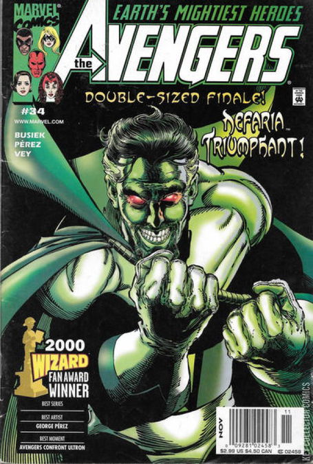 THE NEFARIA PROTOCOLS Continued from Thunderbolts #44 The Avengers and Thunderbolts engage Nefaria in hopes of preventing the detonation of his ionic bomb, which would irradiate the Earth with ionic energy and allow Nefaria to control every living thing on it. Nefaria fights dirty and takes their battle into a neighboring small town where the Avengers and Thunderbolts are forced into damage control mode. However, Madame Masque, with the complete Ionic Lock weapon, is confronted by her bio-duplicate, who was once an Avenger. Nefaria kills the bio-duplicate, but Madame Masque unleashes the full power of the Ionic Lock on Nefaria. Meanwhile, Wonder Man and Atlas absorb the energy of the ionic bomb and foil Nefaria's plans. Nefaria, enraged at his defeat, loses control of his ionic self and explodes.