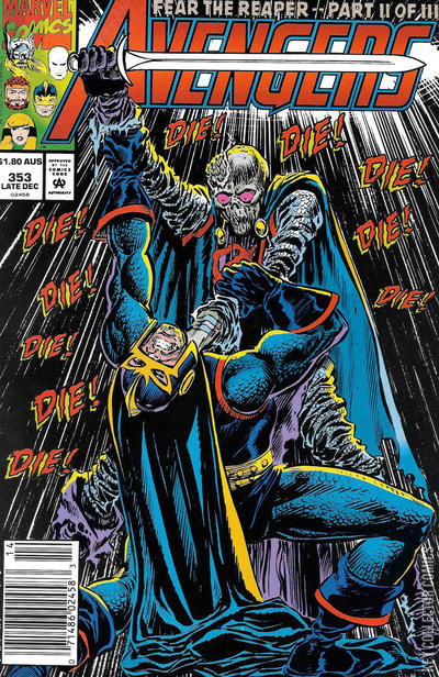 "Fear the Reaper Part 2 To Wake the Dead" The Avengers find themselves in an alien dimension and attacked by the undead. They fend off the Grim Reaper's underlings and make their way to his castle. Unfortunately, the Grim Reaper has assembled a new Legion of the Unliving and sends them off to welcome the Avengers.