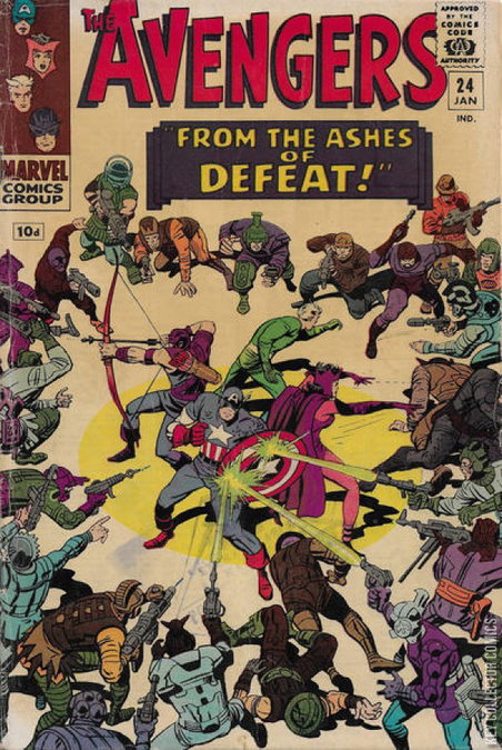 "From The Ashes of Defeat!" Kang makes his escape as his troops advance on the city. Although all seems hopeless, the Avengers decide to put up a fight against the never-ending army arrayed against them. Quicksilver is put out of action by a stray blast while trying to help a mother and child. The rest of the Avengers battle on but are eventually overwhelmed and captured. Although Kang's law states that conquered monarchs are to be executed, Kang wants to marry Ravonna. Meanwhile, Quicksilver is nursed back to health by the mother he saved. The rest of the generals, led by his second-in-command Baltag, rebel against Kang and try to assassinate him. Kang is therefore forced to team up with Captain America, Hawkeye and the Scarlet Witch to save Ravonna and liberate her civilization. Baltag's forces are routed thanks in part to a recovered Quicksilver who rejoins the fray. Kang sends the Avenger back to their time just as Baltag leaps out and fires a shot at Kang. Captain America tries to warn him, but Ravonna leaps in the way and is shot herself. Kang's guards kill Baltag and the Avengers are transported away, leaving Ravonna dying in Kang's arms - unsure whether she will survive or die.